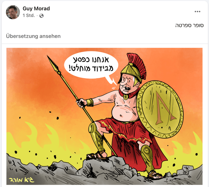 Ich möchte Netanyahu zweierlei in Erinnerung bringen. 1. Warum hat er monate-, wenn nicht jahrelang Gelder von Katar nach Gaza fliessen lassen, um die Hamas ruhigzuhalten? 2. Warum suchte sich Katar ausgerechnet das Büro des PM aus, um unglaubliche Summen an seine Mitarbeiter zu schicken. Mit dem Auftrag, für eine gute PR für Katar in der Welt zu sorgen? 3. Hat er noch nie von den Perserkriegen gehört, bei denen sich die Spartaner 480 BCE für ihren Staat opferten? «Wanderer kommst du nach Sparta, sage, du habest uns liegen seh’n, wie das Gesetz es befahl.» Muss kann das auch über die IDF sagen, die jetzt damit beginnen, die grossen Bodenoffensive gegen Gaza einzuleiten?