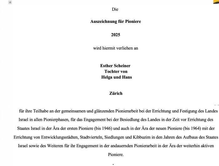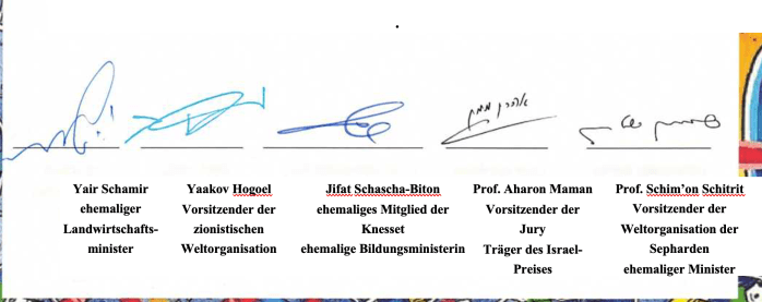 Lieber Shimon, wir alle, die Preisträger dieser bedeutenden Auszeichnung sind stolz auf das Erbe, das wir alle gemeinsam vertreten und sind uns der Verantwortung bewusst, dass wir das Ideal unserer Staatsgründer weiter verfolgen dürfen.