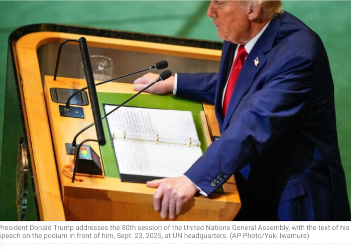 Trump leidet offenbar an Verfolgungswahn. «Nicht ein, nicht zwei, nein drei dunkle Vorkommen sind im Zusammenhang mit meinem Auftritt bei der UNO geschehen.» Zunächst sei die Rolltreppe spontan stehengeblieben. Nur durch einen glücklichen Zufall seien Melania und er nicht zu Fall gekommen. Dann blieb der Teleprompter dunkel, sodass er 15 Minuten frei sprechen oder aus dem vor ihm liegenden Text ablesen musste. Schliesslich sei auch die Tonübertragung in den Saal ausgefallen, sodass die Zuhörer ihn nicht hören konnten. Er verlangte eine Auswertung der Sicherheitskameras und eine scharfe Bestrafung. Den Verantwortlichen für den Stromausfall der Rolltreppe möchte er mit einer Gefängnisstrafe bestrafen. Dabei war der Sicherheitsmechanismus der Anlage möglicherweise von seinem eigenen Fotografen ausgelöst worden. Der Teleprompter wird von Mitarbeitern des Weissen Hauses bedient. Die Tonübertragung mit Übersetzungen in sechs Sprachen ist individualisiert und funktioniert, solange der Betroffene an seinem Platz ist. Unabhängig von der allgemeinen Rede. Also warum die Aufregung?