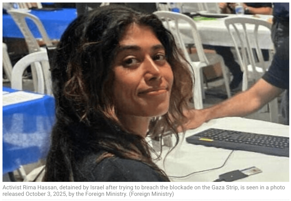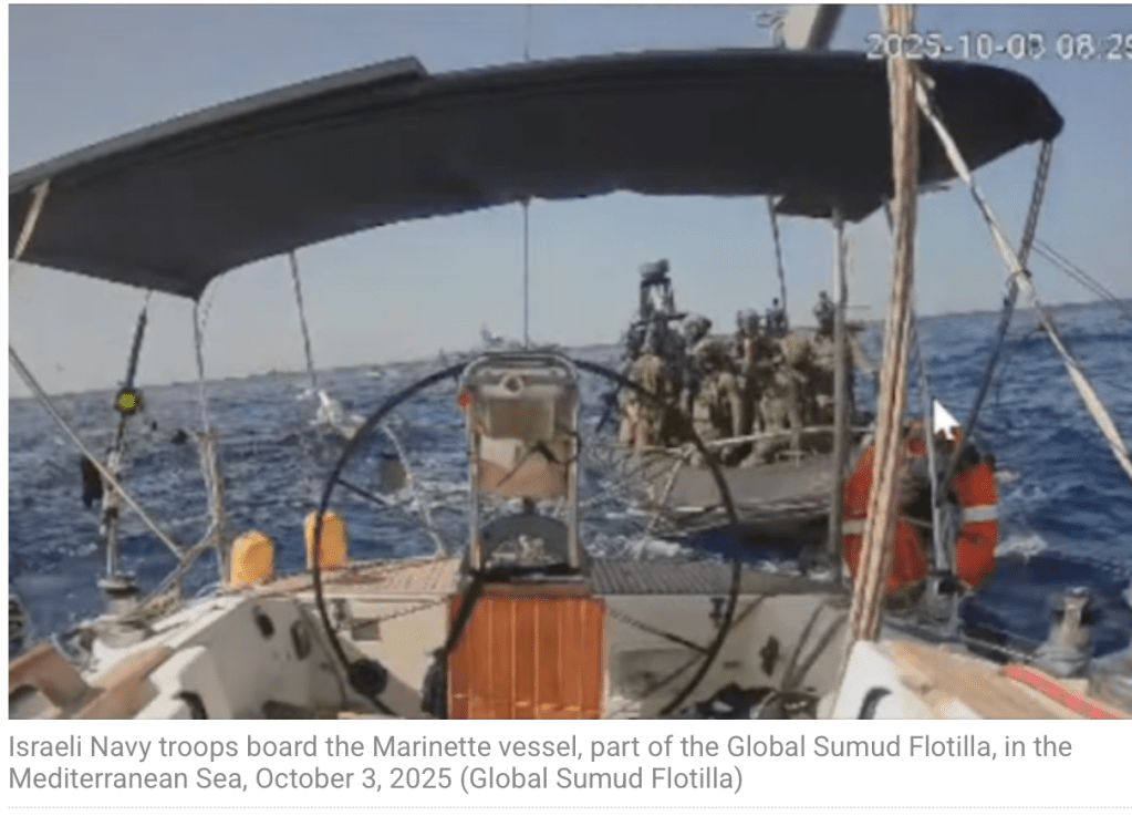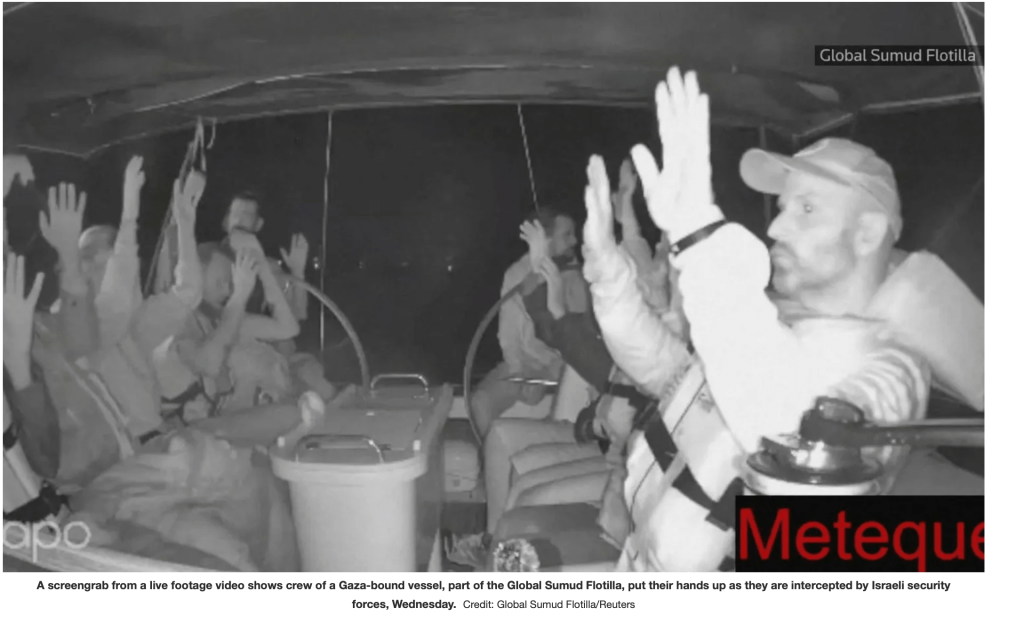 Die ‘Global Sumud Flotilla’, die in den frühen Abend-Stunden am Donnerstag die israelischen Gewässer erreichen wird, will ihren Kurs, trotz ‘Einschüchterungen’ durch die IDF, nicht ändern. In der Nacht auf Mittwoch hatten sich angeblich mehrere Boote ohne Positionslichter genähert, darunter zumindest ein israelisches Kriegsschiff, das sie einige Male ‘aggressiv umkreist habe’. Ein weiteres militärisches Patrouillenboot hätte einen grossen Scheinwerfer auf sie gerichtet, gleichzeitig seien alle Kommunikationssysteme an Bord ausgefallen. Italien und Griechenland haben Israel aufgefordert, «die Sicherheit aller Teilnehmer zu garantieren und jede konsularische Hilfestellung zu gewährleisten.» Gleichzeitig fordern sie die Aktivisten auf, Kompromisse einzugehen und die Hilfsgüter der Katholischen Kirche zu übergeben, die sie in Gaza verteilen werden. Sie sollen unbedingt eine Konfrontation mit Israel vermeiden. Bisher wurde dies von den Aktivisten vehement abgewiesen. «Wir sehen es als Teil unserer Mission, die Blockade, die ungesetzlich ist, zu durchbrechen.»