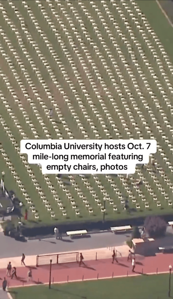 Eine gleiche Aktion wurde an der Columbia Universität, die für die anti-israelischen Demonstrationen bekannt wurde, durchgeführt. Hier wurden 1200 Stühle mit Bildern der Opfer von den beiden NGOs ‘DiploAct’ und ‘Let’s do something’ aufgestellt.