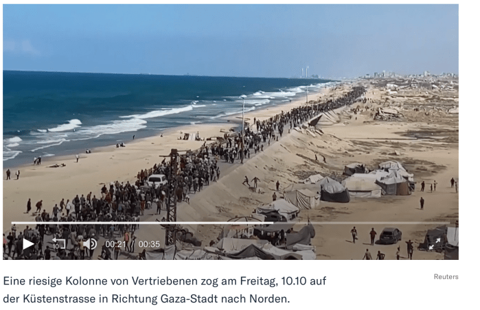 Der Tag, an dem die schier endlose Menschen-Kolonne im Gazastreifen wieder vom angeblich sicheren Süden in den Norden zieht.