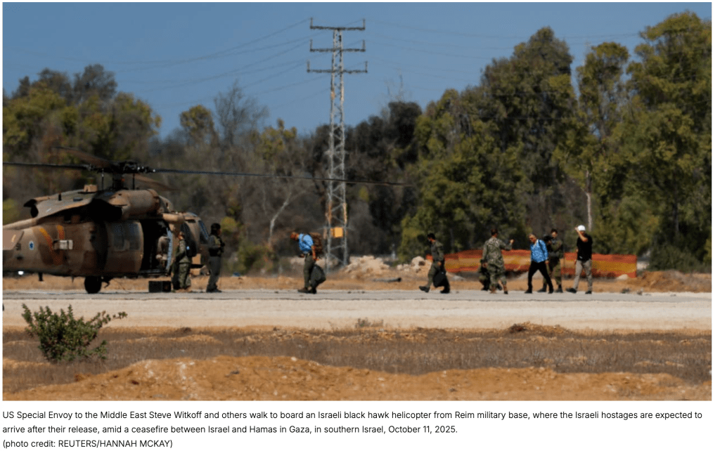 Der US-Sonderbeauftragte Steve Witkoff besuchte mit CENTCOM (United States Central Command) Kommandant Adm. Bradley Copper die IDF-Truppen innerhalb des Gazastreifens. Der Besuch sollte klären, ob der IDF Rückzug, wie in Phase eins festgeschrieben, abgeschlossen sei. Nach dem erfolgreichen Besuch kehrten beide vom Re’im Camp aus nach Israel zurück.