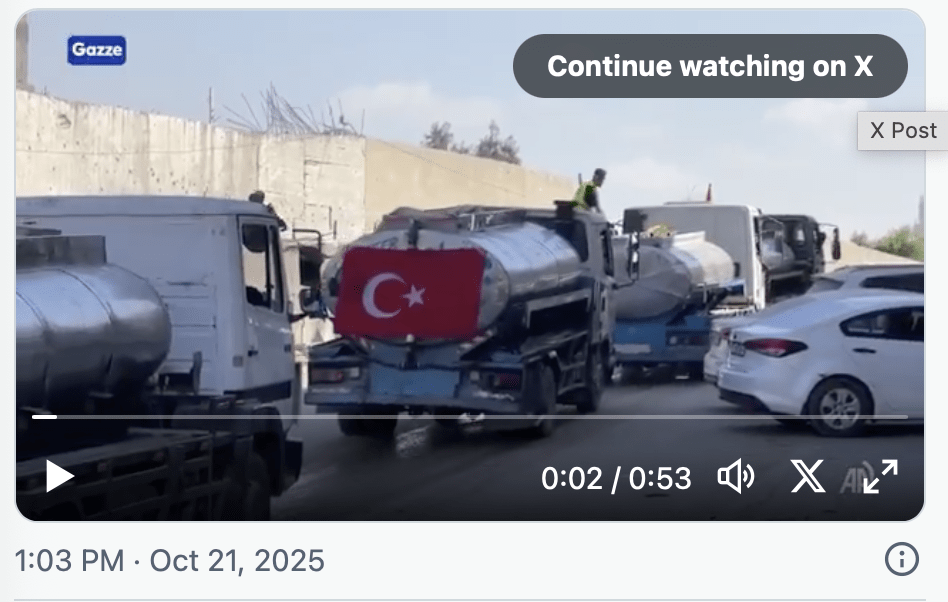 Die IHH-Humanitarian Relief Foundation, in Israel seit der Organisation und Durchführung der Gaza-Flotilla von 2010 als türkische Terror-Gruppe klassifiziert, ist ungehindert im Gazastreifen aktiv. In eindeutig als türkisch und der IHH zugehörig gekennzeichneten Fahrzeugen lieferten sie heute Wasser in den nördlichen Gazastreifen. Mit schweren Geräten unterstützen sie die einheimischen Unternehmen bei den Aufräumarbeiten, die zunächst die Strassen wieder befahrbar machen sollen.