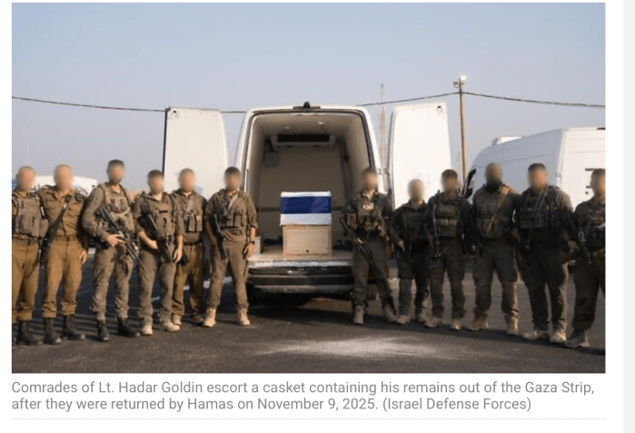 Der Sarg mit den sterblichen Überresten von Lt. Hadar Goldin, s’’l, ist nach 4.118 Tagen nach Israel zurückgekehrt. Am 1. August 2014, unmittelbar nach Beginn einer kurzen humanitäre Waffenruhe, griffen Hamas-Terroristen eine Gruppe von Givati-Soldaten an und töteten drei von ihnen. Hadar Goldin wurde in einen Tunnel in der Nähe von Rafah verschleppt.