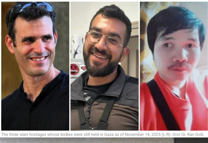 Weiterhin in Gaza befinden sich die toten Geiseln Mast. Sgt. Ran Gvili, Dror Or und Sudthisak Rinthalak, s’’l.