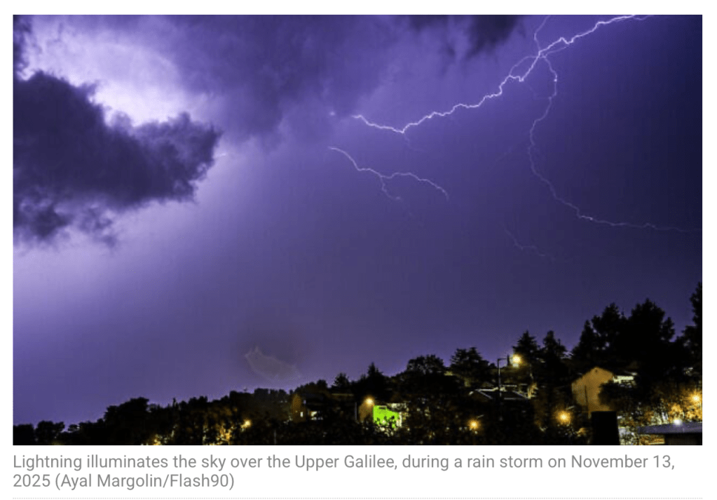 Nicht nur in Europa steht ein erster Kälteeinbruch bevor. Auch in Israel gab es den ersten Schnee auf dem Hermon. Im südlichen Ashkelon und Ashdod wurden die Strassen überflutet. Durch den Sturm im ganzen Land wurden zahlreiche Stromversorgungen unterbrochen. Das stürmische Wetter soll heute während des ganzen Tages weitergehen und morgen am Morgen ausklingen.