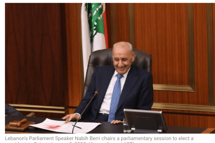 Der libanesische Parlamentssprecher, Nabih Berri, hielt fest, dass die Hisbollah das Recht habe, sich wieder aufzubauen, so wie jede andere Organisation. Im Gegensatz zu Israel habe sie seit dem Inkrafttreten der Waffenstillstandsregelung, keinen einzigen Schuss abgegeben. Berri, ein Verbündeter der Hisbollah, wies es auch weit von sich, dass die Hisbollah auf dem Seeweg Waffen ins Land schmuggelt.