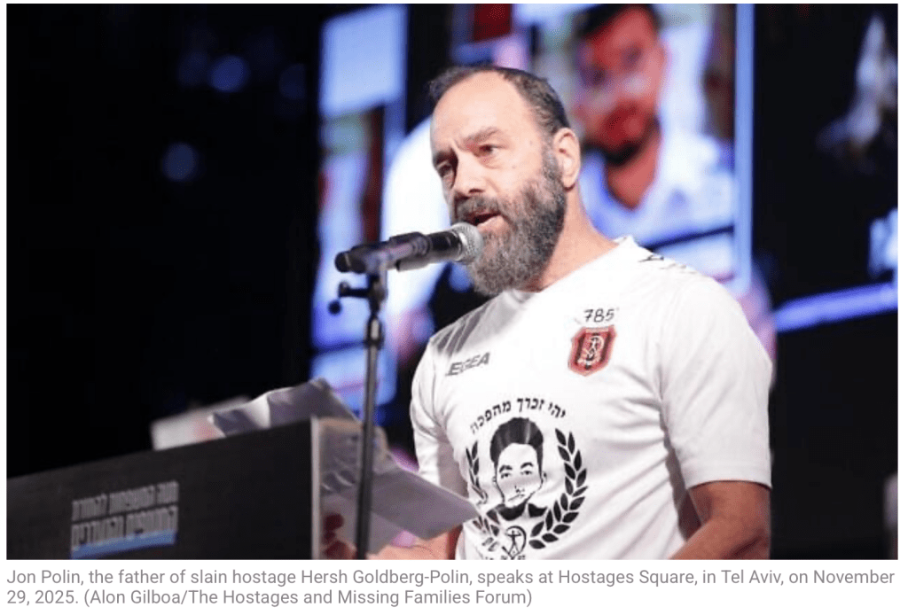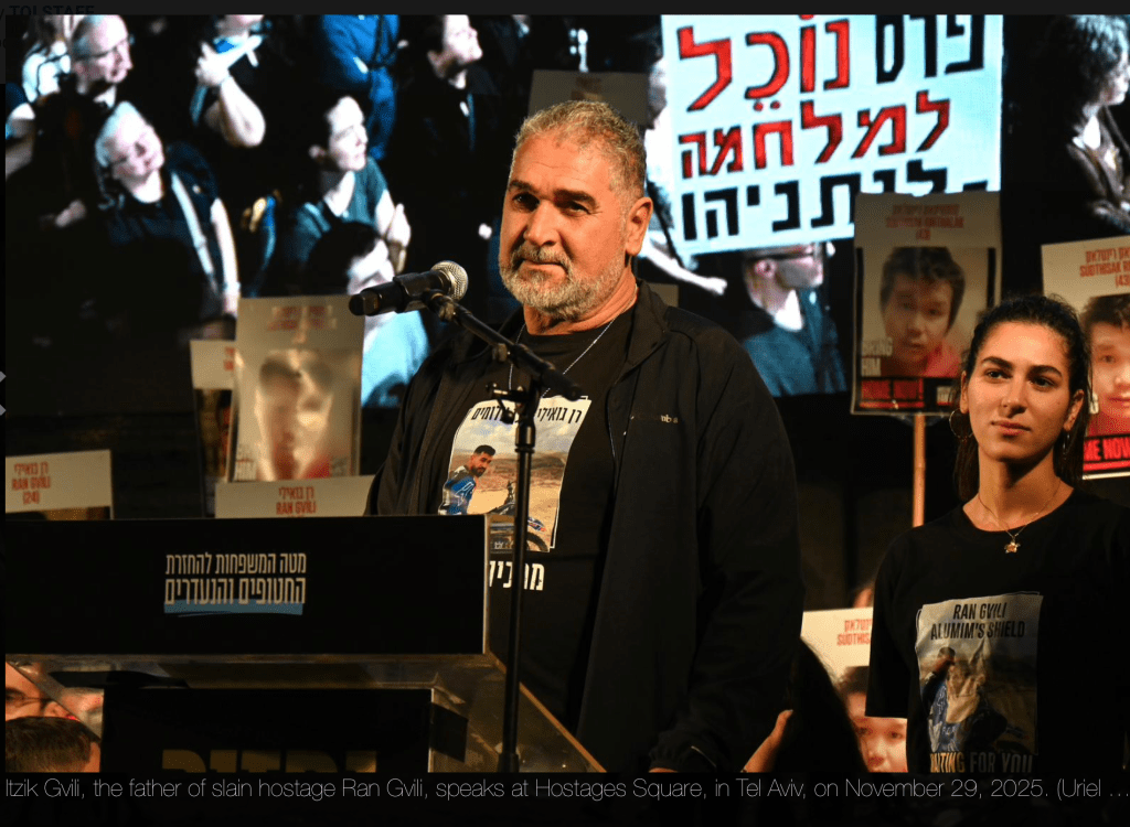 Itzik Gvili, der Vater von Ran Gvili, dessen sterbliche Überreste immer noch in Gaza festgehalten werden, betonte bei der wahrscheinlich letzten Demonstration auf dem Platz der Geiseln: «Es wird keine nächste Phase der Waffenruhe in Gaza und ‘keinen ‚Tag danach‘ in Gaza geben, bis die Hamas die sterblichen Überreste von Ran und Sudthisak Rinthalak zurückgibt. Die Hamas sagt, sie suche nach den Leichen», sagt Gvili, «aber wir sehen keine Fortschritte. Sie spielen mit uns, und das muss jetzt aufhören.» Gvili, ein Polizeioffizier, hatte am 7. Oktober 23 mit seinen Kollegen versucht, Menschen zu retten, die Opfer des Massakers wurden. «Das war ihr Geist, und das ist das Erbe, das sie uns hinterlassen», sagt Gvili. «Gemeinsam, denn das ist unsere Stärke und unsere Kraft. Jetzt ist es unser Ziel, unseren Rani nach Hause zu holen. Genug mit dem Schmerz und den offenen Wunden – wir wollen aus dieser Achterbahn aussteigen. Es ist Zeit, Sudthisak und Rani zurückzuholen und einen Schlussstrich zu ziehen.