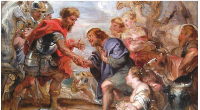 Er muss geahnt haben, dass ein Treffen mit seinem Bruder unmittelbar bevorstand. Anders als bei Geschwistern, die sich nach so vielen Jahren erstmals wieder treffen, war er nicht glücklich darüber. Im Gegenteil, er fürchtete sich. Plagte ihn immer noch das schlechte Gewissen über seinen Betrug an ihm? Es muss so gewesen sein, denn als er Esav Boten entgegenschickte, wie es im ersten Absatz dieses Wochenabschnittes steht, so trägt er ihnen auf „Sagt zu meinem Herrn Esav, ich, dein Knecht Ja‘acov…“ Was will er damit sagen? Mein Betrug an dir hat nicht funktioniert? Ich habe immer noch keine Macht über dich? Die Prophezeiung „der Jüngere wird über den Älteren befehlen“ hat nicht gegriffen?