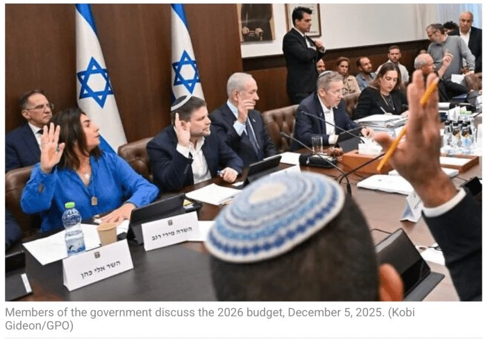 So schnell und so früh wie noch nie zuvor hat die Regierung heute Vormittag das Budget 2026 durchgewunken. Offenbar gab es nur eine Differenz zwischen Verteidigungs- und Finanzministerium, für die aber ein Kompromiss gefunden wurde. Sowohl die Opposition als auch Naftali Bennett kritisierten das Budget.