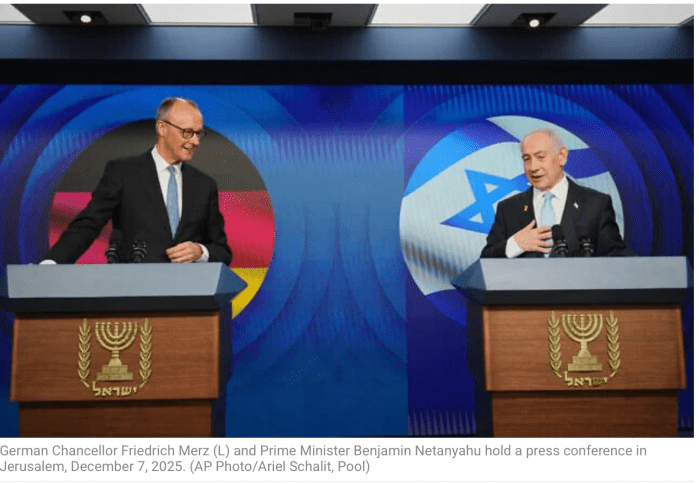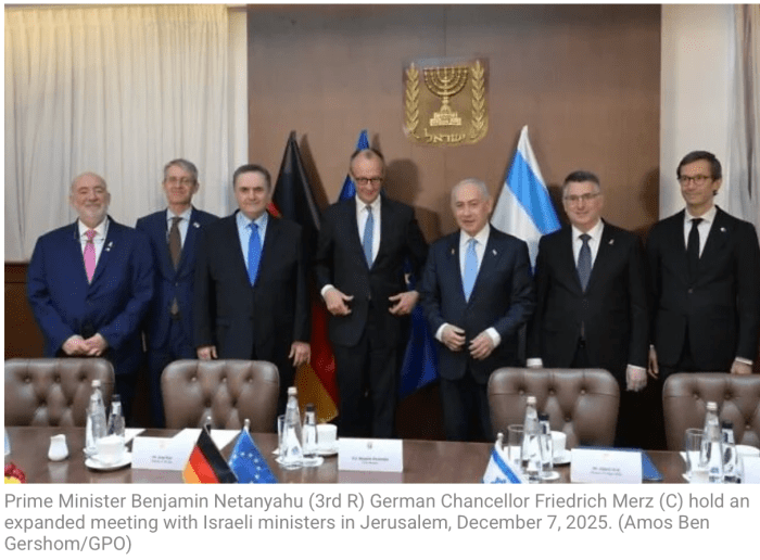 Nachdem er sich gestern Abend mit Aussenminister Gideon Sa’ar und Präsident Isaac Herzog getroffen hatte, stand heute Vormittag ein Treffen zwischen Netanyahu und Merz, sowie Vertretern der Regierung auf dem Programm.