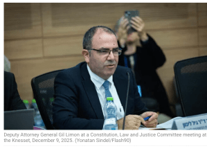 Moshe Saada, Likud, bedrohte offenbar den stv. GStA Gil Limon: «Sie sitzen mit einem Lächeln vor mir, und an Ihrer Stelle sassen einst der stv. Militärstaatsanwalt und der Militärstaatsanwalt – ebenfalls mit einem Lächeln –, und Sie wissen, wo sie heute sind. Sie wissen genau, wo sie heute sind, und Sie, Gil, werden am selben Ort enden.» Der Vorfall fand während einer Sitzung des ‘Verfassungs-, Rechts- und Justizausschusses’ statt, bei dem wieder einmal diskutiert wurde, wie man die Rolle der GStA beschneiden könne. Limor entgegnete höflich: «Sie werden mich nicht einschüchtern.» Saada liess nicht locker: «Ich werde mich Ihnen nicht beugen. Ich werde Ihnen die Wahrheit sagen, und wenn ich spreche, Gil, werden Sie den Mund halten.» MK Naama Lazimi, Demokraten, wandte sich an den Vorsitzenden Simcha Rothman, Otzma Yehudit: «Rothman, das ist eine Mafia-Drohung – er bedroht ihn. Warum sagt er das zu ihm?», der darauf völlig falsch reagierte. Er schrie Lazimi an, zu schweigen und wies sie anschliessend aus dem Raum. Moshe Saada ist ungehobelter Ignorant!