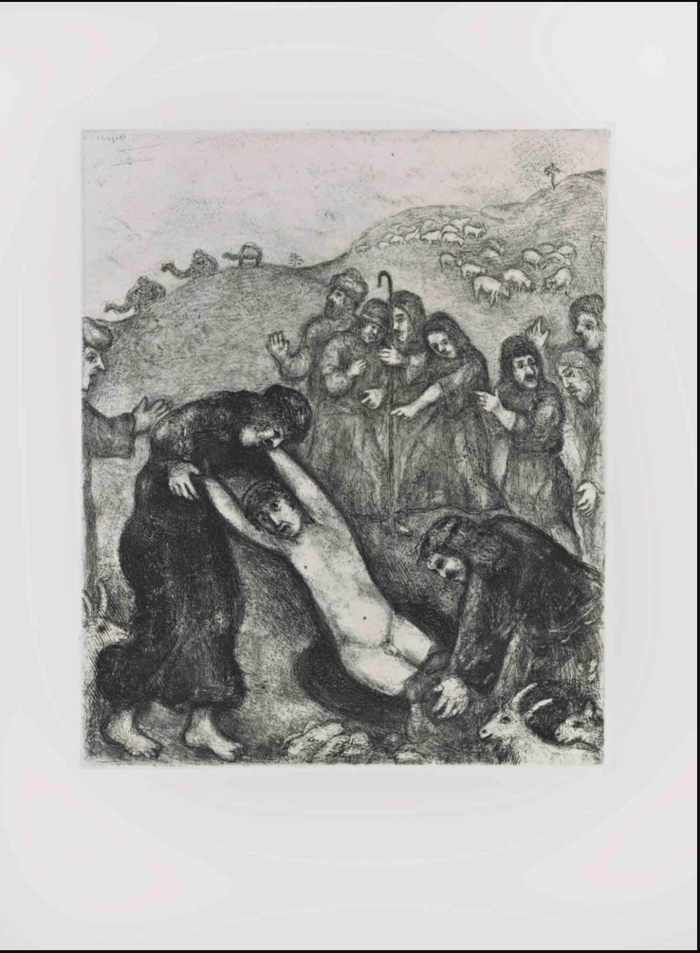 Einmal träumte er, er nehme eine herausragende Stelle unter ihnen ein. Da riss ihnen die Geduld, sie sannen darauf, ihm eine Lektion zu erteilen. Die Gelegenheit kam, als der Vater ihn wieder einmal losschickte, sie auszuspionieren.