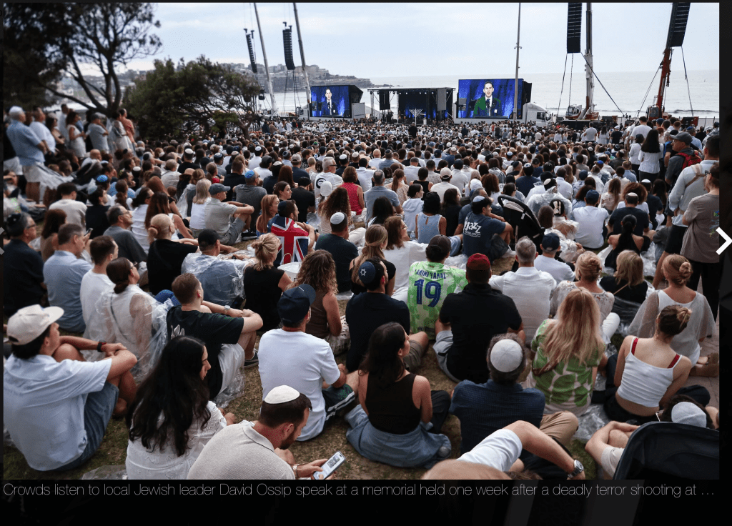 Ossip bedankte sich auch beim PM von New South Wales, Chris Minns, «der diese Woche keine Beerdigung, keinen Gottesdienst in der Synagoge und keine Gelegenheit verpasst hat, mit der jüdischen Gemeinde zusammen zu sein. Danke, Chris, für deine Führungsstärke.» Ossip stellt dann die Oppositionsführerin von New South Wales, Kellie Sloane, vor, die er als „Heldin“ bezeichnet. «Letzte Woche traf Kellie mitten während des Angriffs die Entscheidung, zum Bondi Beach zu fahren, dorthin, wo sich der Vorfall ereignete, und sie leistete den Verletzten Hilfe und gab denjenigen, die es brauchten, Unterschlupf … Das ist Tapferkeit, das ist Mut. Danke, Kellie.» Meine Frage an die israelischen Regierungsmitglieder: Wo wart ihr während der ersten Tage nach dem Massaker vom 7. Oktober 2023?