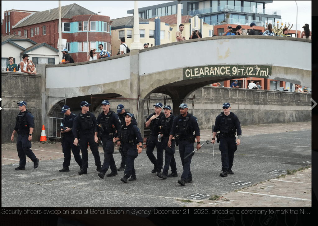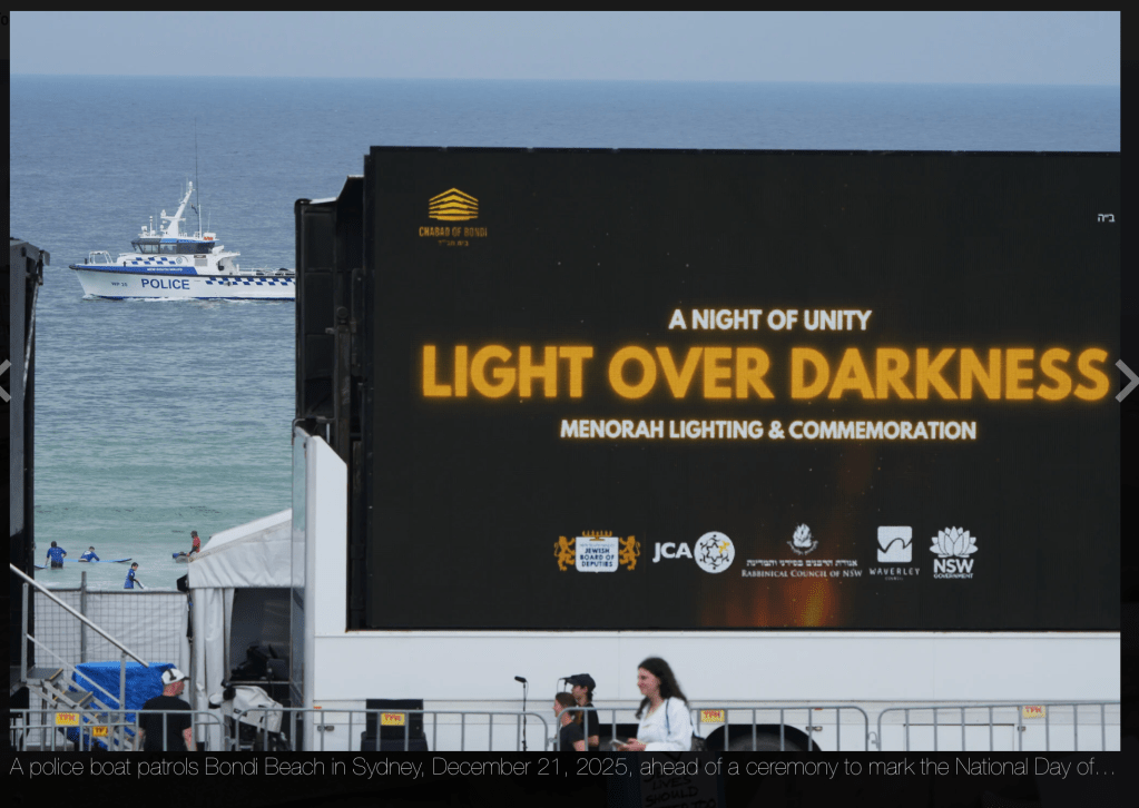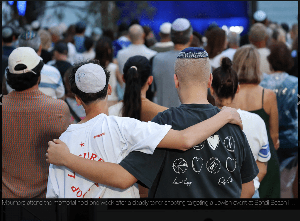 Rettungsschwimmer und – Surfer haben gestern nicht nur am Bondi Beach, sondern auch an den anderen grossen Stränden der Region eine kurze Gedenkzeremonie abgehalten. In ganz Australien gibt es mehr als 200.000 Freiwillige, die erkennbar sind an ihren gelb-roten ‘Uniformen’. Über dem Bondi Beach kreiste während der Zeremonie ein Hubschrauber der Organisation. Zahlreiche Lebensretter hatten sich beim Massaker vom 14.12. am ersten Abend des Chanukka Feiertages als Ersthelfer betätigt, ihre Surfbretter als Bahren eingesetzt und ‘verlorengegangene Kinder’ betreut. Yishar Koach!