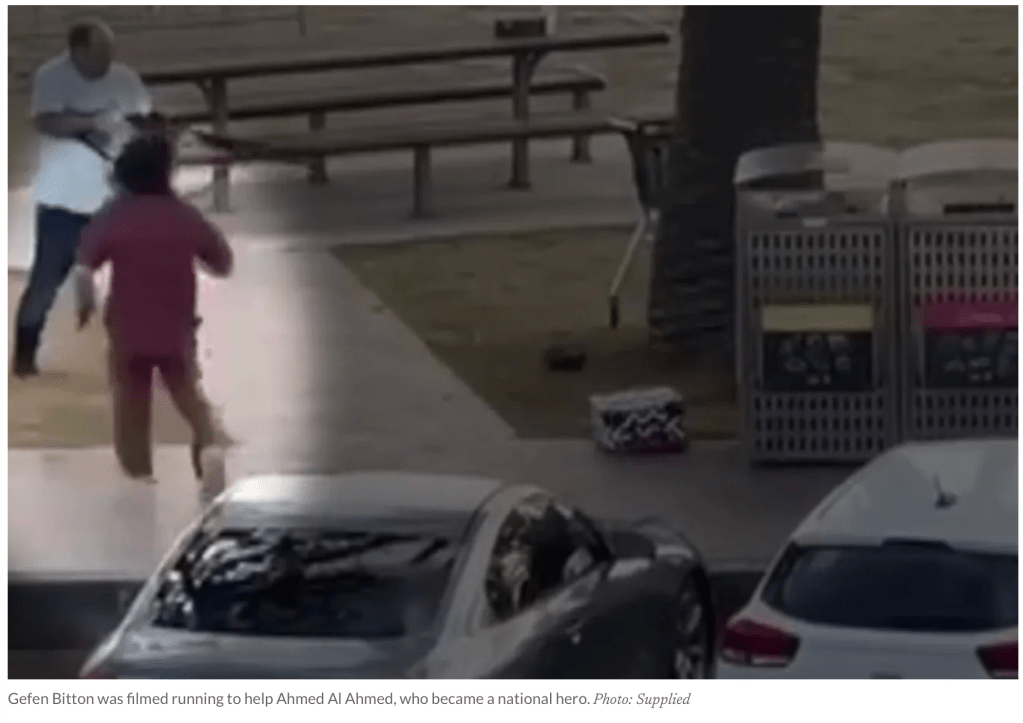 Bei einer Gedenkzeremonie am Bondi Beach betonte David Ossip, einer der Vorsitzenden der jüdischen Gemeinschaft in Australien: «Ahmed al Ahmed und Geffen Bitton sowie Boris und Sofia Gurmam, s’’l, die mitten während der Schiesserei auf den Terroristen zugerannt sind, haben mit ihrem unglaublichen Mut zahlreiche Menschenleben gerettet.» Geffen Biton liegt nach seiner schweren Verwundung nach wie vor im Koma und es ist unklar, ob er überleben wird. Bis heute hatte niemand von seinem Rettungsversuch Kenntnis. Nach dem Massaker war zunächst unklar, in welchem Spital er sich befand, weil niemand seinen Namen wusste. Erst mittels der App ‘Find my Phone’ konnte sein letzter bekannter Standort identifiziert werden. Den zweiten Hinweis gab ein Video auf dem Freunde ihn neben Ahmed al Ahmed erkannten und ihn an seinem roten Shirt identifizierten.