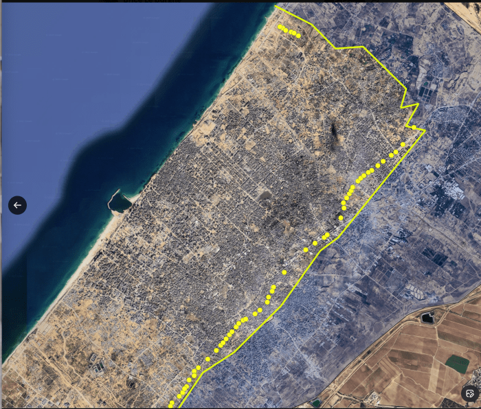 Die IDF weist heute eine Behauptung der französischen Tageszeitung Libération zurück, wonach sie langsam das von ihr kontrollierte Gebiet im Gazastreifen ausdehnt. Die Truppen handeln nach eigenen Angaben bei der Markierung auf der Grundlage von Anweisungen der politischen Führung und in Übereinstimmung der mit den im Waffenstillstandsabkommen festgelegten Grenzen. Die IDF fügt hinzu, dass sie «so weit wie möglich» handelt, um Schäden für unbeteiligte Zivilisten im Einklang mit dem Völkerrecht zu minimieren. Die Zeitung hat nach eigenen Angaben die Markierungen mit Hilfe von Satelliten geolokalisiert und festgestellt, dass statt der vereinbarten 53 % jetzt bereits 56 % von der IDF kontrolliert werden.