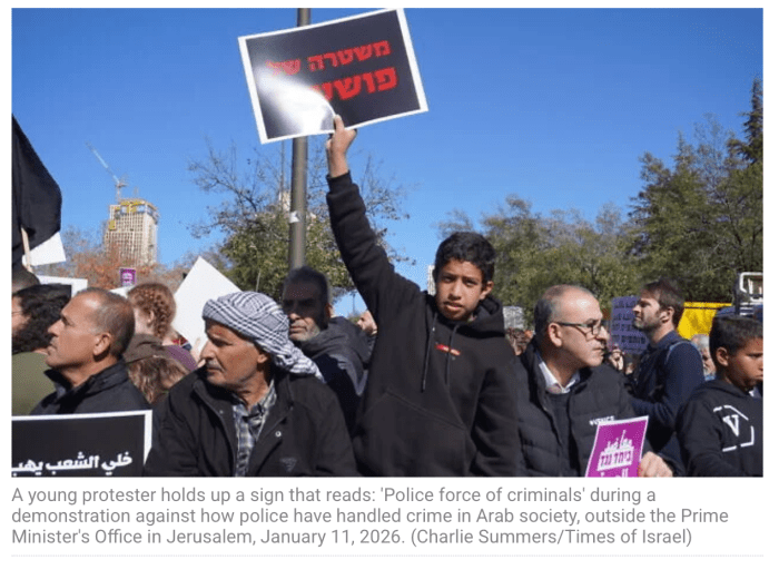 Die Beduinen des Ortes Tarabin al-Sana, die zwölf Tage lang einer äusserst aggressiv durchgeführten Tür-zu-Tür Durchsuchung durch den Grenzschutz, die Polizei und die neue Nationalgarde ausgesetzt waren, demonstrierten heute ausserhalb des Hauses von Netanyahu in Jerusalem. Während der Durchsuchung wurde Mohammad Hussein Tarabin scheinbar grundlos erschossen. Der Grund für diese willkürlich anmutende Untersuchung waren einige in Brand gesetzte Pkws in einer benachbarten jüdischen Siedlung. In der Nähe der Demonstranten stehen Wasserwerfer. Auch die berittene Polizei ist im Einsatz. Dieses Vorgehen erinnert mich an Nazi- und KGB-Methoden!