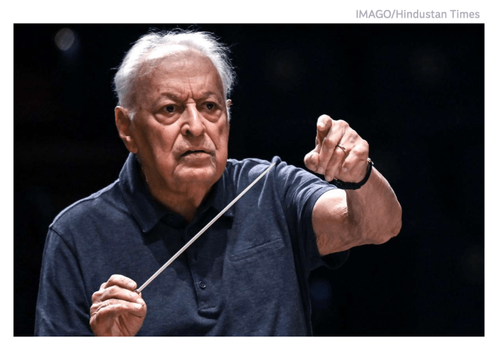 Zubin Metha, 89, das Urgestein der klassischen israelischen Musik, war von 1969 bis 2019 Musikdirektor des ‘Israelischen Philharmonischen Orchesters’. 1991 erhielt er als erster und bis anhin letzter Nicht-Israeli den Israelpreis. (Soll jetzt tatsächlich Trump der zweite damit Ausgezeichnete werden????) Als er 1961 zum ersten Mal nach Israel kam, fühlte er sich nach eigenen Angaben durch das ‘organisierte Chaos’ sofort an seine Heimat Mumbai erinnert und verliebte sich in das Land. Jetzt hat er alle bevorstehenden Konzerte in Israel abgesagt. «Ich habe alle meine Verpflichtungen in Israel in diesem Jahr abgesagt, weil ich mit Herrn Netanyahus Umgang mit der gesamten Palästinenserfrage nicht einverstanden bin. Ich hoffe, Netanyahu wird bei den kommenden Wahlen nicht mehr gewählt.» Um die Musik ist es schade, aber ansonsten: Respekt !