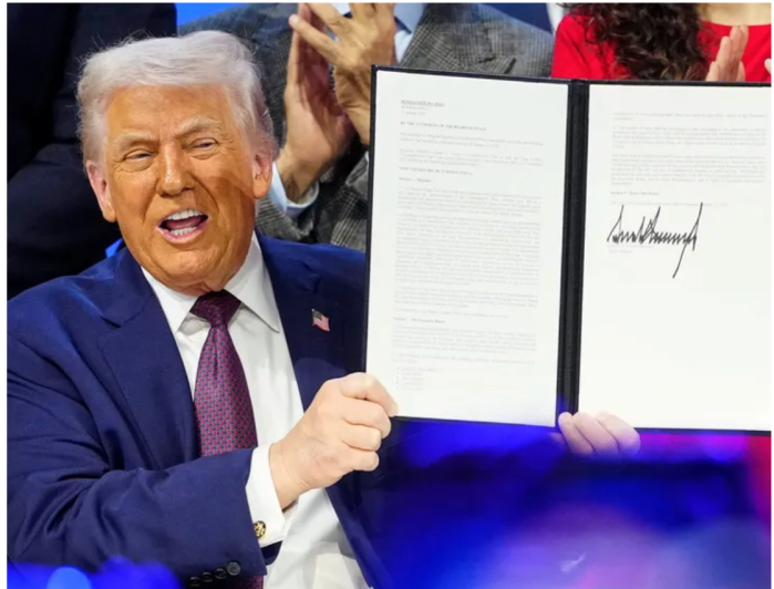 Vorher gab es, wie bei Trump selbstverständlich, 20 Minuten Selbstbeweihräucherung, bevor er zum eigentlichen Thema kam.