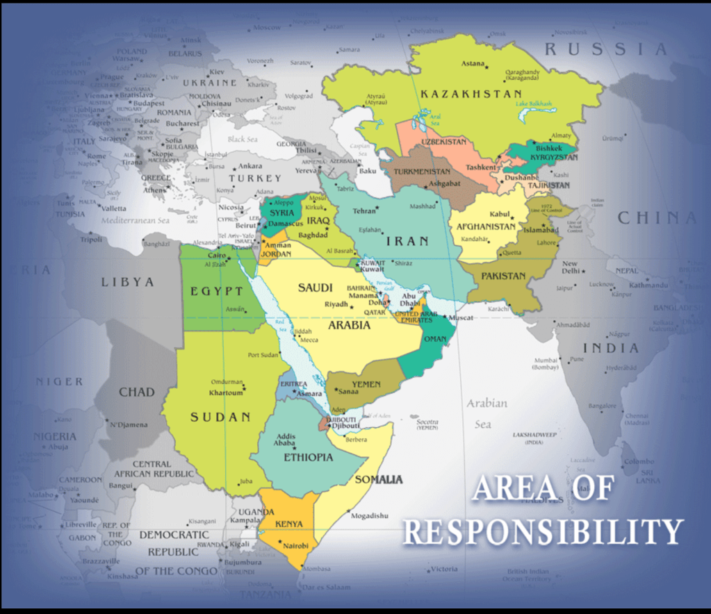 [1] CENTCOM, das ‘Zentralkommando der USA’, gehört zu den elf Streitkräften der UN-Streitkräfte. Es wurde 1983 gegründet und untersteht dem Verteidigungsministerium (heute Kriegsministerium). CENTCOM ist zuständig für den Nahen Osten, Ost-Afrika und Zentral-Asien. Der Sitz ist in der ‘MacDill Air Force Base’ in Tampa, Florida.