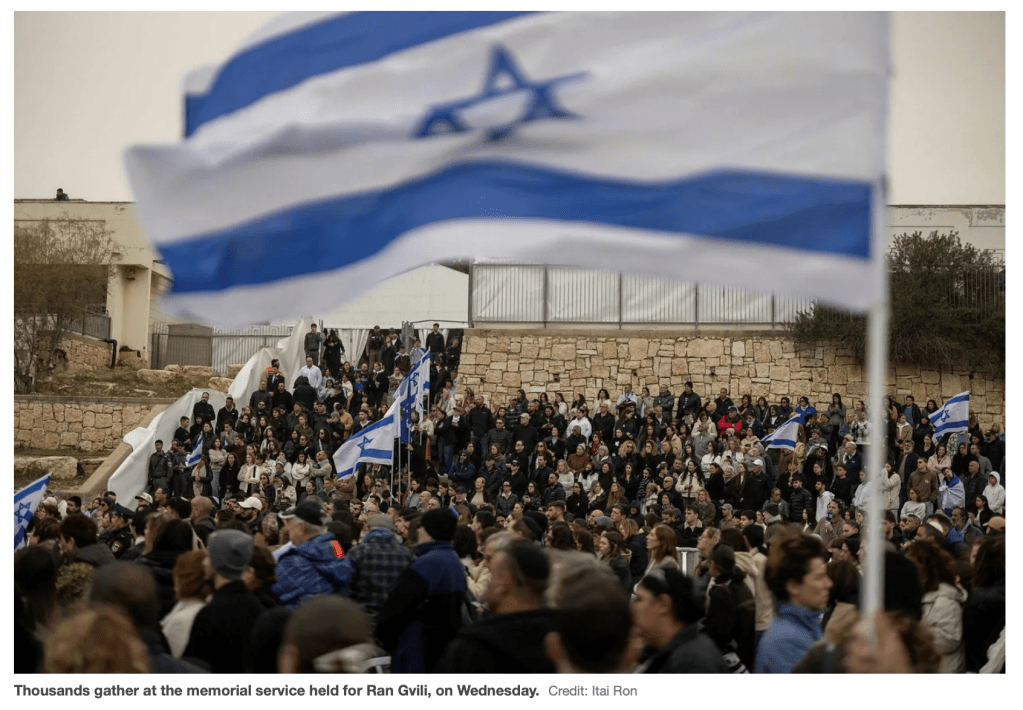 Der ehemalige Star des israelischen Blockbusters ‘Fauda’, Idan Amedi, hat an der Bergung der sterblichen Überreste von Ran Gvili, s’ll, teilgenommen. Auf der Gedenkveranstaltung sang er für ihn und alle Anwesenden den von ihm geschriebenen Song ‘Nigmar’ (2012). Hier der englische Text.
