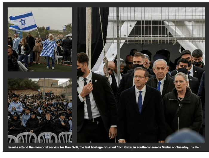 Nach diesem Erfolg erlaubt sich Netanyahu eine weitere Auszeit gemeinsam mit Sara N.. Vom 18. bis zum 22. Februar wird er in Washington weilen. Die beiden bisher bekannten Termine sind ein Gespräch mit Trump und ein Treffen mit Vertretern der AIPAC (American Israel Public Affairs Committee). Der Termin ist so gewählt, dass er erst am Sonntagabend zurück nach Israel fliegen wird. Um es festzuhalten: Es ist der siebente Besuch vom Ehepaar Netanyahu bei Trump seit Beginn von dessen zweiter Amtszeit. Ob die Kosten angesichts der angespannten Budgetlage in Israel gerechtfertigt sind, vor allem, seit man jedes Gespräch online führen kann, ist in meinen Augen sehr fragwürdig.