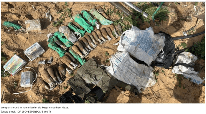 Die IDF entdeckte bei einer Standard-Patrouille innerhalb des von ihnen kontrollierten Gebietes eine grosse Menge von in UNWRA Decken und Säcke verpackter Waffen. Darunter befanden sich Granaten, Raketen, Munition und andere militärische Gegenstände. Es ist der grösste Waffenfund seit Beginn der Waffenruhe im Oktober 2025.
