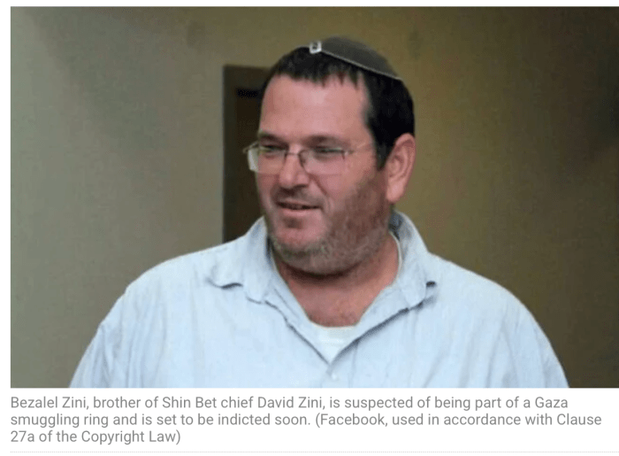 Bezalel Zini, der Bruder von Shin-Beth Chef David Zini, gilt als einer der Verdächtigen, in einem grossangelegten Schmuggelring Waren, hauptsächlich Zigaretten, in den Gazastreifen gebracht zu haben. Als Reservist der IDF soll er seine Position ausgenutzt haben, um Zigaretten im Wert von mehreren NIS 100.000 aus Israel geschmuggelt zu haben. Das Amtsgericht Ashkelon verlängerte die Haft um einen Tag, bis die formelle Anklage erhoben werden kann. Honi soit qui mal y pense!