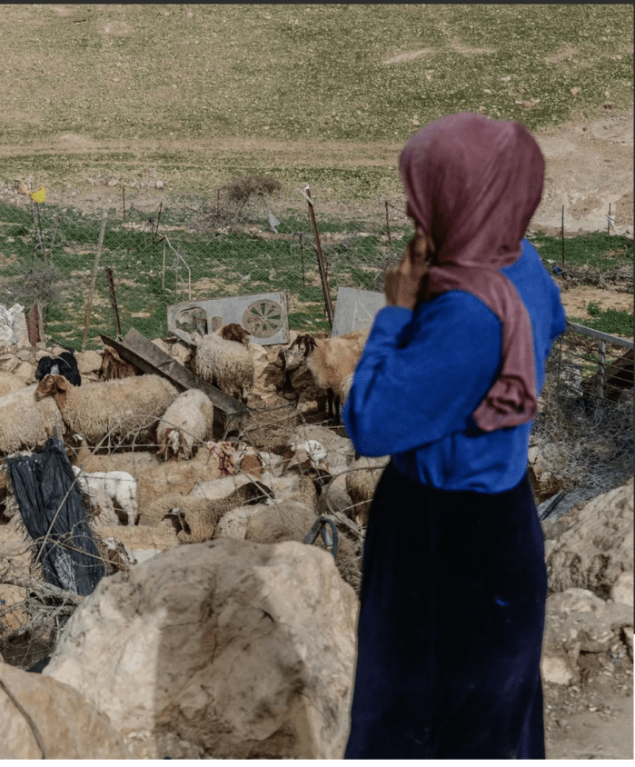 Eine Frau aus Halawa versuchte, zusammen mit Ismaels Tochter Widad seine Schafe zurückzuholen, aber die Soldatin packte die Tochter. „Die Siedler sprühten ihr Pfefferspray in die Augen. Sie versuchte, mit den anderen Frauen zum Wadi hinunterzugehen, aber sie konnte nichts sehen. Wir brachten sie nach Hause“, sagte die Frau.