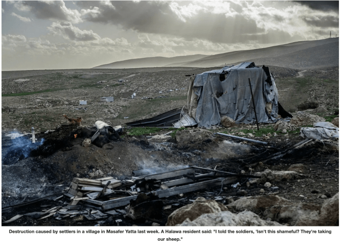Die Anwohner haben immer noch Schwierigkeiten, zu verarbeiten, was nach Halawa, im nahe gelegenen Dorf Khirbet al-Fakhit und auf dem angrenzenden Hügel geschah: Drei Palästinenser wurden vom Roten Halbmond zur Notfallbehandlung evakuiert, während andere vor Ort behandelt wurden; Schafherden wurden gestohlen; Eigentum wurde in Brand gesetzt – und das alles, während israelische Streitkräfte während des gesamten Pogroms in Halawa anwesend waren.
