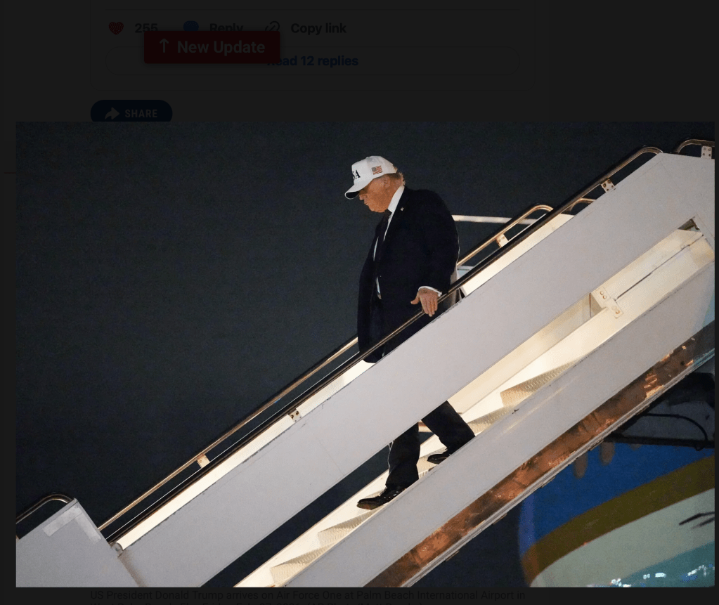 Ganz, als ob ein normales Wochenende bevorstand, flog er am Freitagabend ins Wochenende nach Mar-a-Lago. Von dort aus überwacht er, gemeinsam mit seinem Sicherheitsteam, die ‘Situation im Iran’, wie seine Pressesprecherin mitteilte. Sie bestätigt auch ein Telefonat zwischen Netanyahu und Trump, ohne auf Details einzugehen.
