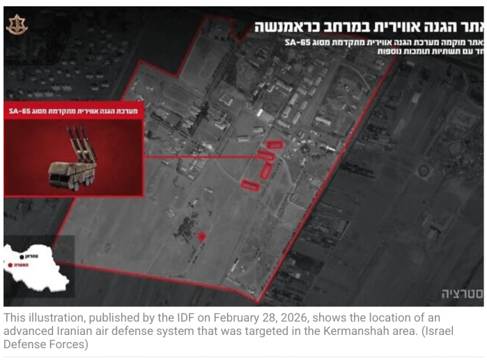 Die IDF gibt bekannt, eines der Luftverteidigungssysteme, das SA-65, komplett zerstört zu haben. Mit der Zerstörung erhält die IAF eine grössere Operationsfreiheit im Gebiet Kermansha.