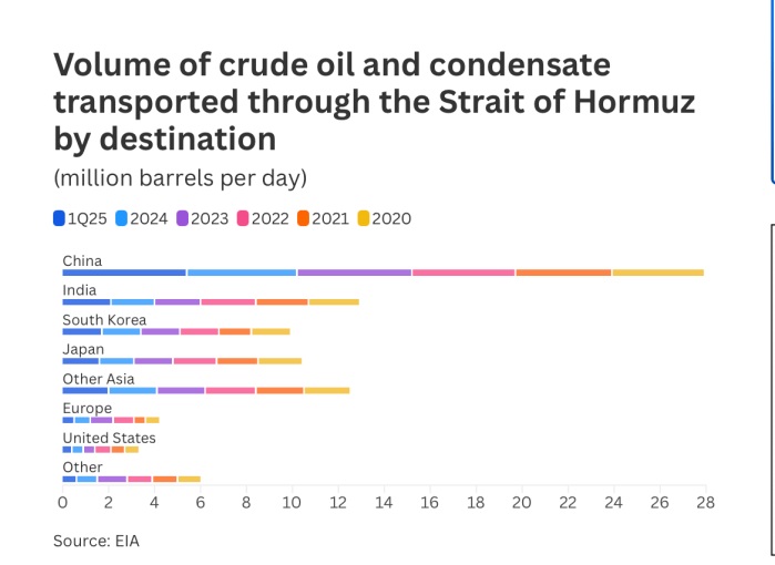 Saudi-Arabien und andere Ölproduzenten aus der Golfregion, wie die VAE, Kuwait und Irak, können seit den Angriffen der USA und Israels auf den Iran am Freitag kein Öl mehr durch die Strasse von Hormus transportieren. Hunderte von Schiffen ankern vorsichtshalber auf beiden Seiten der Meerenge. Der Iran hat angekündigt, jedes Schiff zu beschiessen, das versucht, diesen wichtigen Schifffahrtsweg zu passieren