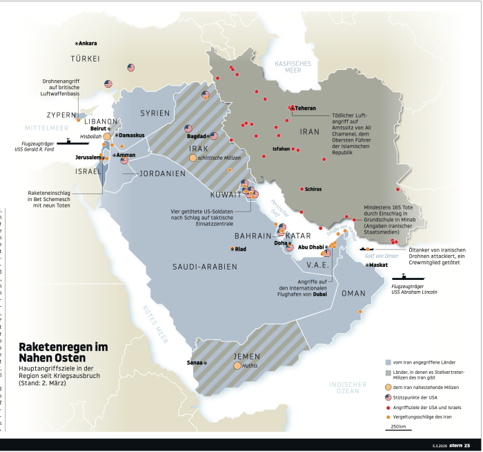 Das Öllager im Hafen von Salalah, Oman, wurde wahrscheinlich von iranischen Drohnen angegriffen. Die Tanks wurden dabei in Brand gesetzt. Vorhergegangen war ein abgewehrter Angriff auf den Hafen von Duqm, Oman. Der Oman war in den vergangen Wochen als Vermittler zwischen den USA und dem Iran geworden. Dass jetzt der Iran ein Land angreift, das historisch immer wieder als Vermittler auftritt, ist völlig unverständlich und zeigt, wie weit sich dieser Konflikt in der Region ausgebreitet hat.
