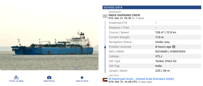 Zwei unter indischer Fahne segelnde Frachter konnten gestern das Gebiet verlassen und sind auf dem Weg nach Indien, wo sie zwischen dem 26. und 28. März ankommen werden.
