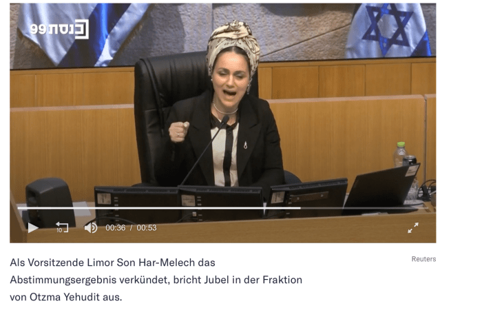Auch die Vorsitzende Limor So Har-Melech war unübersehbar glücklich und war sich nicht zu blöd, einen Segensspruch anzubringen.