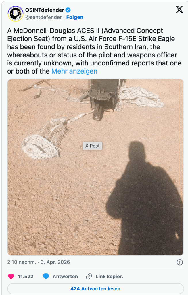 Am frühen Nachmittag europäischer Zeit warnte Trump den Iran, er werde noch heute Brücken und Elektrizitätswerke angreifen und zerstören. «Das wird ein einzigartiges Erlebnis sein! Öffnet endlich die verdammte Meerenge, ihr verrückten Bastarde, oder ihr werdet in der Hölle leben – wartet nur ab! Lob sei Allah.» Ich kann nur hoffen, dass es sich bei diesem Screenshot um einen gefälschten Versuch handelt, Trump zu imitieren. Die iranische Führung hat sich ihr Anrecht auf Respekt verspielt. Trump als POTUS darf sich diesen ordinären Ton nicht erlauben.
