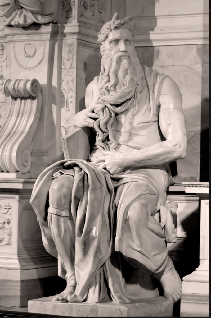 Übrigens, die Strahlen, welche hier beschrieben werden, sind einer der Gründe, warum Moshe von den grossen Bildhauern wie Michelangelo oft irrtümlich mit Hörnern dargestellt wird. Die nicht interpunktierten Worte für ‘strahlend’ und ‘gehörnt’ sehen gleich aus: קרן und müssen aus dem Kontext erkannt werden.