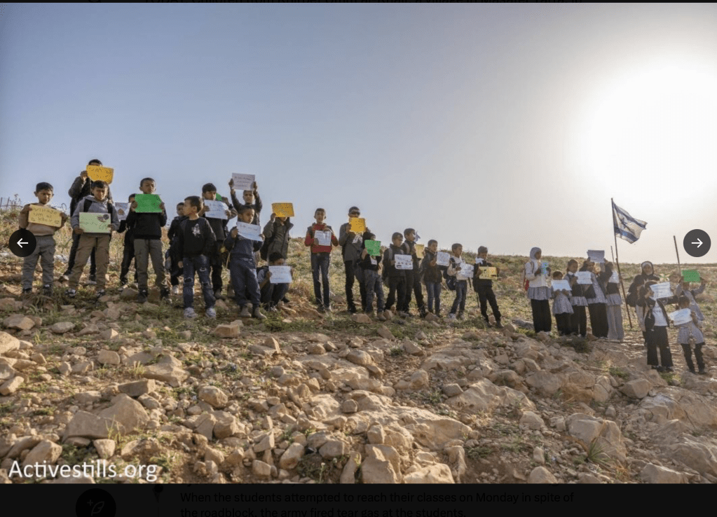 Dutzende palästinensische Kinder aus dem Dorf Umm al-Khair, in der Nähe von Hebron, wurden heute von jüdischen Siedlern aus der Siedlung ‘Carmel’ daran gehindert, zur Schule zu gehen. Die Siedler hatten den Weg mit Stacheldraht versperrt. Khalil Hathaleen, Vorsteher des Dorfes, bedauerte, dass die Kinder jetzt nicht ihren gewohnten, sicheren Schulweg benutzen können, sondern einen weitaus gefährlicheren, der näher an der jüdischen Siedlung vorbeiführt. «Wir bestehen darauf, den Hauptweg zu nutzen, den unsere Kinder schon immer genommen haben“, sagte er und warf den Siedlern vor, zu versuchen, das Land zu übernehmen, um ihre Siedlung zu erweitern.» Wenig später feuerten israelische Soldaten Tränengas auf die Kinder, die sofort mit heftigen Atemproblemen reagierten.Die IDF gab zu, Mittel zur Auflösung von Menschenansammlungen eingesetzt zu haben, jedoch gegen erwachsene Palästinenser. Die Kinder seien nicht gezielt angegriffen worden. So geht es natürlich nicht, das Militär in Judäa und Samaria muss ausgetauscht werden. Dort müssen bedächtige und erfahren Soldaten und Reservisten zum Einsatz kommen und keine politischen Hitzköpfe.