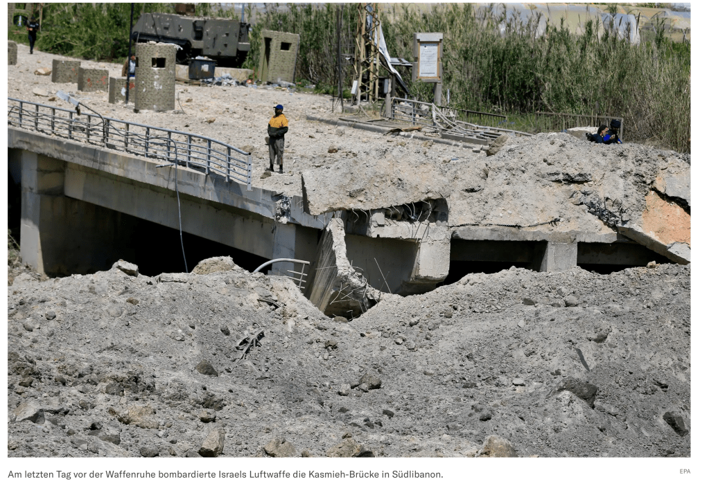 Das mit der Hisbollah affiliierte Nachrichtenportal Al-Amyadeen berichte, dass das reguläre Militär damit begonnen hat, die al-Qasmiyeh Brücke provisorisch instand zu setzen und für den Verkehr freizugeben. So können diejenigen, die nach den Evakuierungsmassnahmen in den Norden geflohen waren, wieder in ihre Dörfer im Süden des Landes zurückkehren. Das Militär hat neben dieser Brücke noch zwei Ausweichrouten bereitgestellt. Auf den freien Strassen haben sich schon lange Staus gebildet.