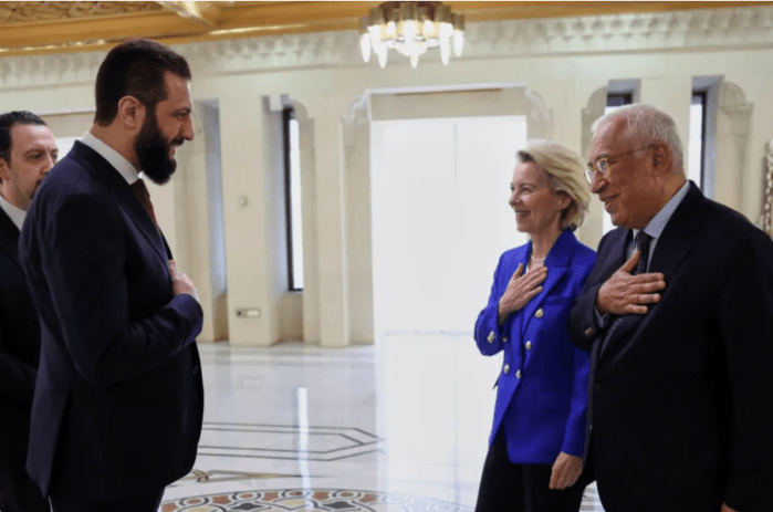 Nachdem die Beziehungen zwischen der EU und Syrien seit Jahrzehnten eingefroren waren, trafen sich jetzt EU-Ratspräsidentin Ursula van der Leyen und der Vorsitzende des Europarats Antonio Costa mit dem syrischen Präsidenten Ahmad al-Sharaa in Damaskus. Um das Engagement der EU mit Syrien zu stärken, werden erneut formelle politische Kontakte aufgenommen, die den Weg für engere Wirtschafts- und Sicherheitsbeziehungen vorbereiten. Ziel ist es zunächst, das Kooperationsabkommen von 1978 wieder aufzunehmen und umzusetzen. Ahmed al-Sharaa strebt eine umfassendere Integration in die internationale Gemeinschaft an. Dazu gehört auch, die sichere, «freiwillige und würdige Rückkehr» von Flüchtlingen und Vertriebenen zu erleichtern. In Europa leben etwa eine Million syrischen Flüchtlinge und Asylsuchende, mehr die Hälfte von ihnen lebt in Deutschland. Ein weiterer Schwerpunkt liegt bei der Sicherung und Ausweitung der Rechte syrischer Kurden.