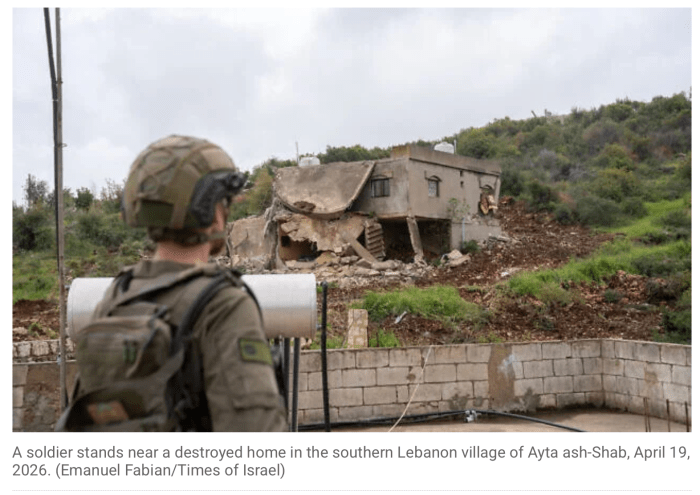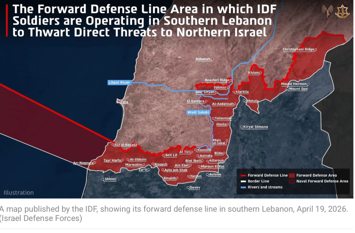 Die IDF warnt die libanesischen Zivilisten trotz der noch bis Mittwoch dauernden Waffenruhe, nicht in den Süden des Landes zurückzukehren. Wie in der Vereinbarung erklärt, darf sich die IDF weiterhin in ihren Stellungen aufhalten, «um auf eventuelle Aktivitäten und Bedrohungen durch die Hisbollah sofort reagieren zu können», wie IDF-Sprecher Avichay Adraee festhielt. Am frühen Morgen wurde nördlich der ‘gelben Linie’, das ist die von der IDF selbst definierte Grenze der ‘vorwärts Verteidigung’, eine auf Israel gerichtete, abschussbereite Raketenabschussbasis entdeckt und zerstört. Die vorwärts Verteidigung soll potenzielle Bedrohungen bereits im Vorfeld verhindern. Was für den ‘Angreifer’ als pro-aktive Schutzmassnahme gilt, wird beim Angegriffenen oftmals als äusserst aggressiv empfunden. Israel rechtfertigt die Zerstörungen damit, dass die Hisbollah zivile Infrastrukturen oft nutzt, um Waffen darin zu lagern, von dort aus Angriffe durchzuführen oder Tunneleinstiege zu tarnen. Laut Haaretz scheint die IDF jedoch nicht zwischen Gebäuden, die von der Terrorgruppe genutzt werden, und unberührten Gebäuden zu differenzieren, da Berichten zufolge ganze Orte dem Erdboden gleichgemacht werden. Die Abrissarbeiten werden von angestellten zivilen Bauunehmern aus Israel durchgeführt, darunter auch solche, die nach der Anzahl der von ihnen zerstörten Gebäude vergütet werden, wie die Kommandeure gegenüber Haaretz erklärten.