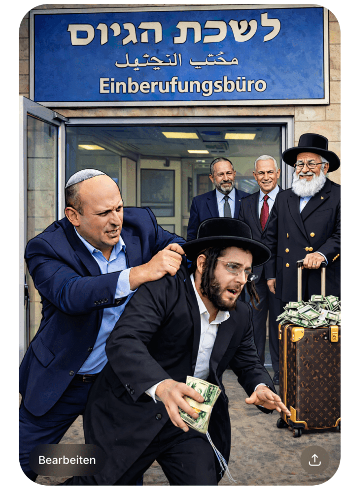 Der ehemalige PM Naftali Bennett, der als stärkster Konkurrent für Netanyahu bei den kommenden Wahlen gilt, äusserte sich zur Einberufung von Haredim: «Die Wehrdienstverweigerung [der Haredim] kostet unseren Soldaten das Leben. Die Reservisten sind müde. Es schadet unserer Einsatzfähigkeit und kostet Menschenleben», er fährt fort: «Es gibt 100.000 gesunde Haredim im wehrpflichtigen Alter. Die Einberufung lässt sich ganz einfach bewerkstelligen. Indem man die Geldtransfers an diejenigen stoppt, die nicht zum Militär gehen, und an diejenigen, die [in Yeshivot] studieren. Was die Wehrdienstverweigerung aufrechterhält, sind die Gelder, die Netanyahu, Deri und Goldknopf überweisen.»