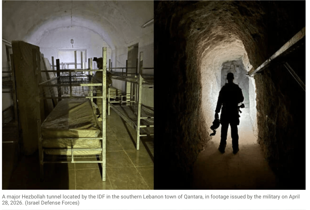 Die IDF gab Einzelheiten zum gestern von ihnen zerstörten Tunnel-System nahe der Stadt Qantara bekannt. Die Bauzeit der Tunnels dürfte nach ihren Schätzungen etwa zehn Jahre gedauert haben und unter direkter Anleitung des Iran entstanden sein. Es handelt sich um zwei nebeneinanderliegende Systeme in einer Tiefe von etwa 25 m, die nicht miteinander verbunden sind. Wahrscheinlich sind sie Teil der Pläne zur Eroberung des oberen Galil. Aufgrund der vorgefundenen Einrichtung geht die IDF davon aus, dass sie als Sammel- und Rückzugsort für eine grosse Zahl von Terroristen dienen sollten. Einige der Nebentunnel dienten als Schlafraum, andere als Lagerraum für Waffen und militärische Ausrüstung. Insgesamt wurden 450 t Sprengstoff eingesetzt, um die Zerstörung erfolgreich auszuführen.