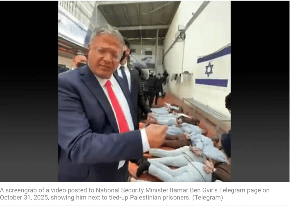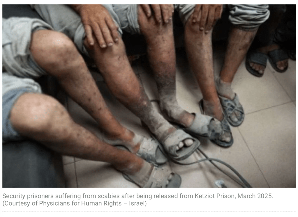 Ein zweiter Kaktus geht an die israelische Gefängnisverwaltung. Wie kann es sein, dass ein palästinensischer Journalist mit guten Beziehungen zu israelischen Kollegen, im vergangenen Jahr in ‘Administrativhaft’ genommen wird. Und dann offenbar vergessen wurde. Heute, nach einem Jahr, wurde Ali Samoudi entlassen, ohne dass jemals Anklage gegen ihn erhoben wurde. Wie die Bilder belegen, ist aus dem ehemals kräftigen, gesunden Mann ein dürrer ‘Muselman’ geworden, der die Hälfte seines Körpergewichts verloren hat: 60 kg. Die Staatsanwaltschaft hat im Januar einen erschreckenden Bericht veröffentlicht, der beschreibt, «dass palästinensische Sicherheitshäftlinge in israelischen Gefängnissen unter schwerer und systematischer Gewalt durch Gefängniswärter, Nahrungsentzug und medizinischer Vernachlässigung gelitten haben, während sie zudem unhygienischen Bedingungen ausgesetzt waren, die Krankheitsausbrüche in den Gefängnissen verursachten und verschlimmerten.» Muss man noch nachfragen, in wessen Resort die Gefängnisverwaltung fällt? Ja, richtig: Ben-Gvir ist für sämtliche Massnahmen verantwortlich.